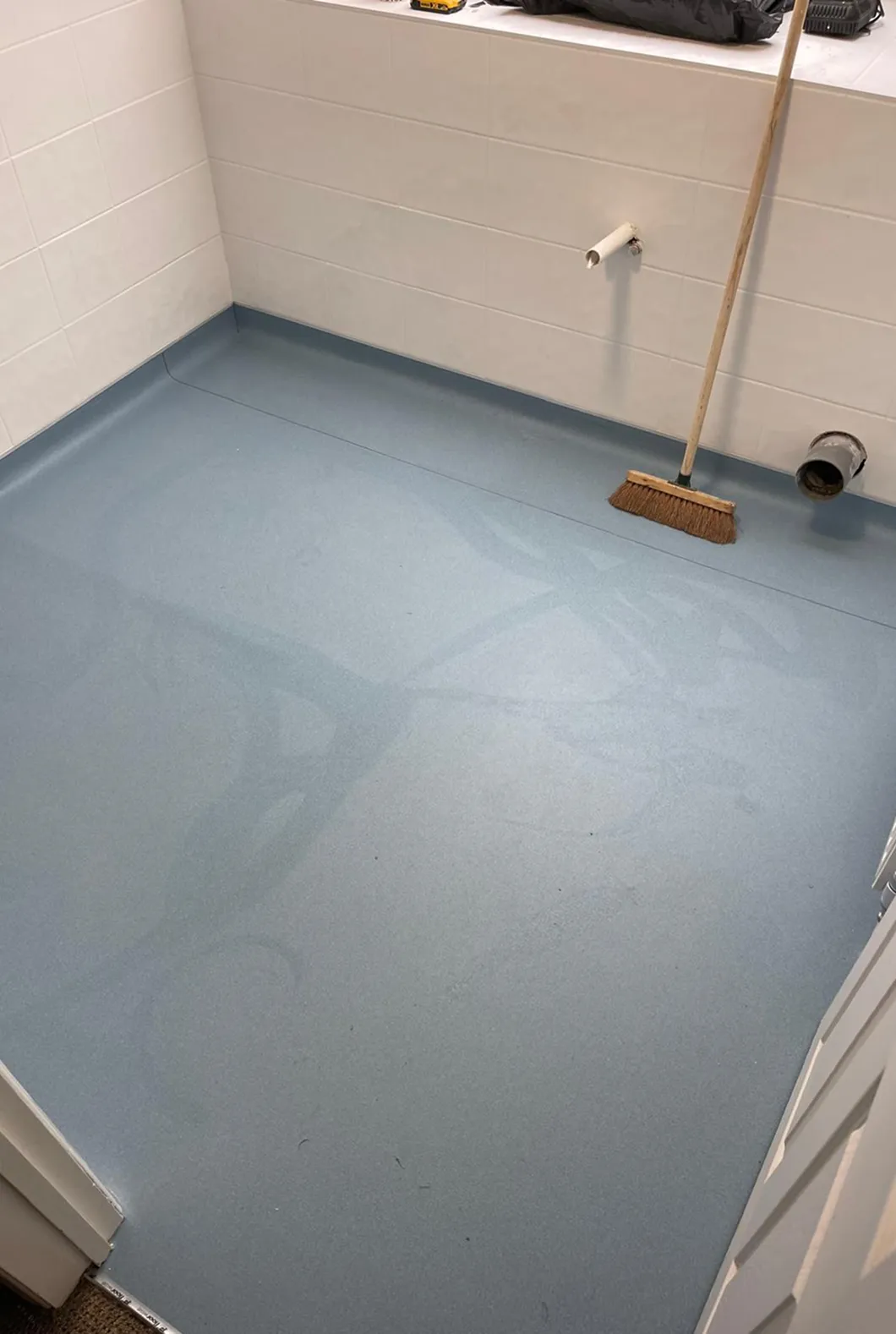 This type of flooring is widely used in care homes, hospitals, schools, commercial kitchens, residential bathrooms, accessible shower rooms, gyms, spas, and utility areas.